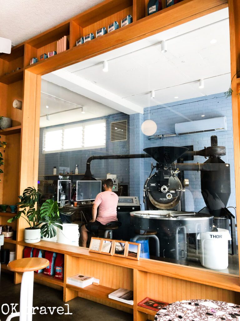 你可以悠哉的點一杯咖啡,看著玻璃櫥窗裡的烘豆師優雅的烘著豆,沈浸在自己的世界裡