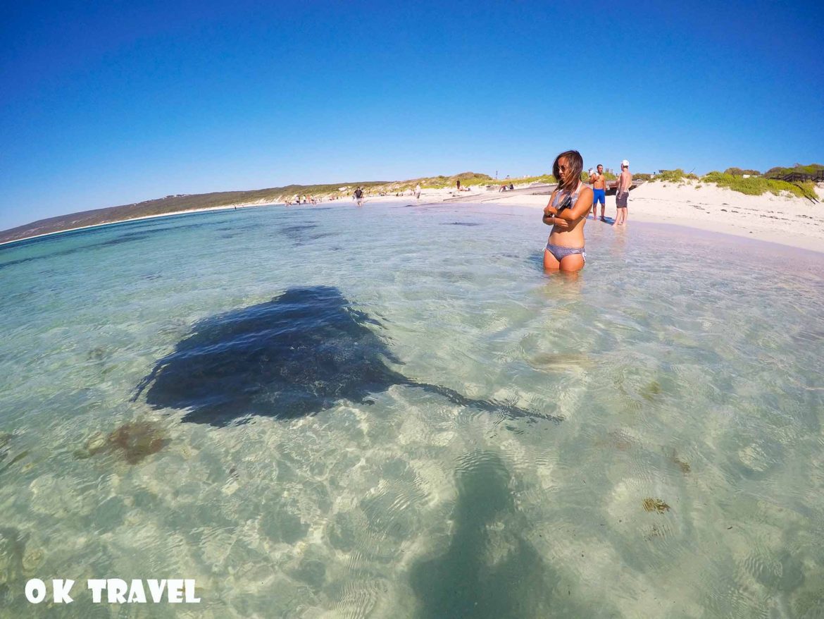 Hamelin Bay 哈梅林灣有名的就是一群會遊走在岸邊的大木耳 – 刺魟(Sting Ray),只要到水深到膝蓋的岸邊,就可以看到他們四處徘徊